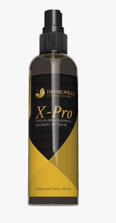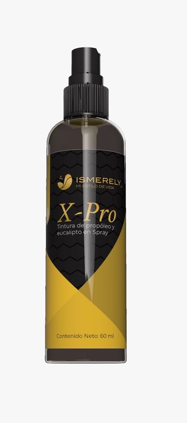 "X-PRO" de Ismerely es un spray que contiene propóleo y eucalipto, diseñado para ofrecer una protección natural y un bienestar refrescante. Se describe como una "brisa" que ayuda a proteger, refrescar y revitalizar, ideal para el uso diario.